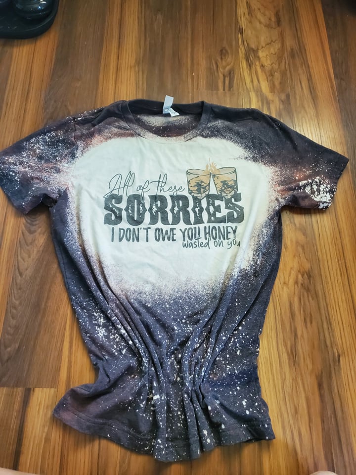 Reminder: All bleached shirts are handmade, so there will not be any identical bleaching patterns