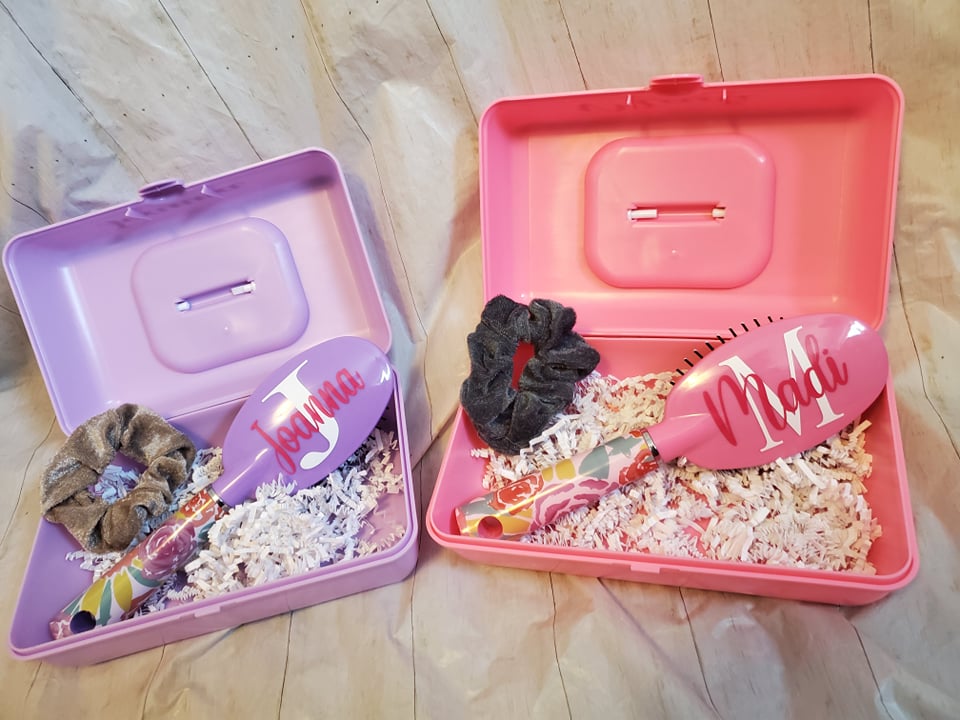 Each box includes the caboodle, a scrunchie and a hairbrush