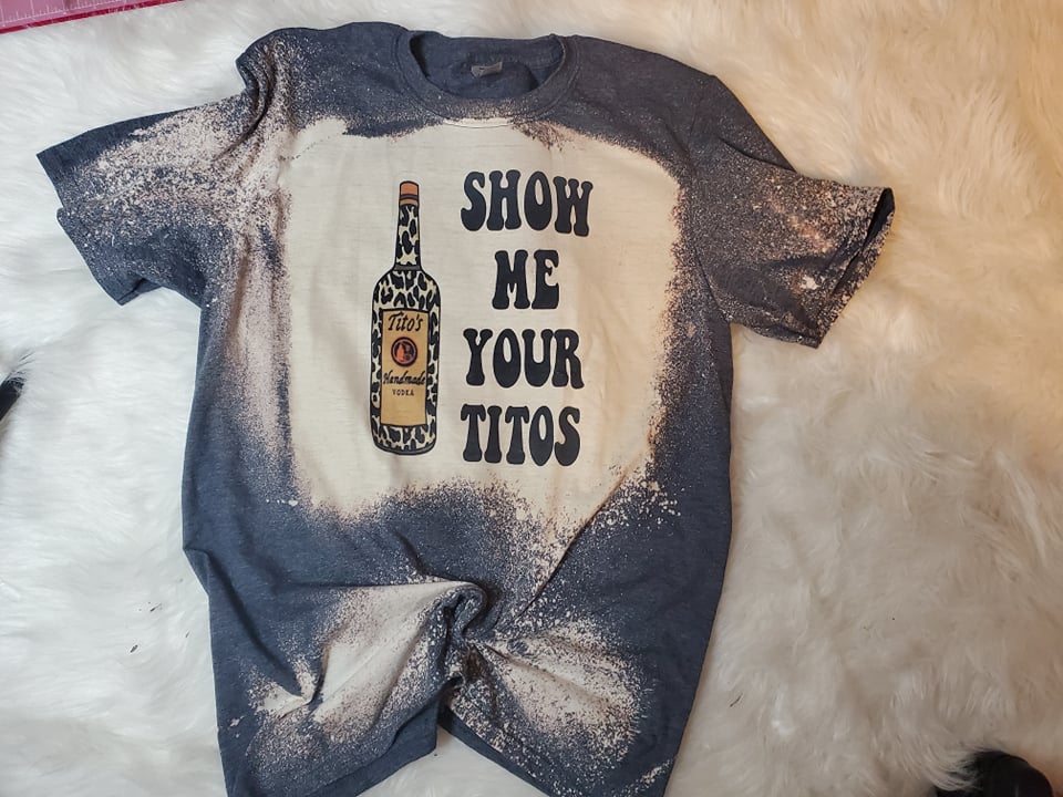 Reminder: All bleached shirts are handmade, so there will not be any identical bleaching patterns
